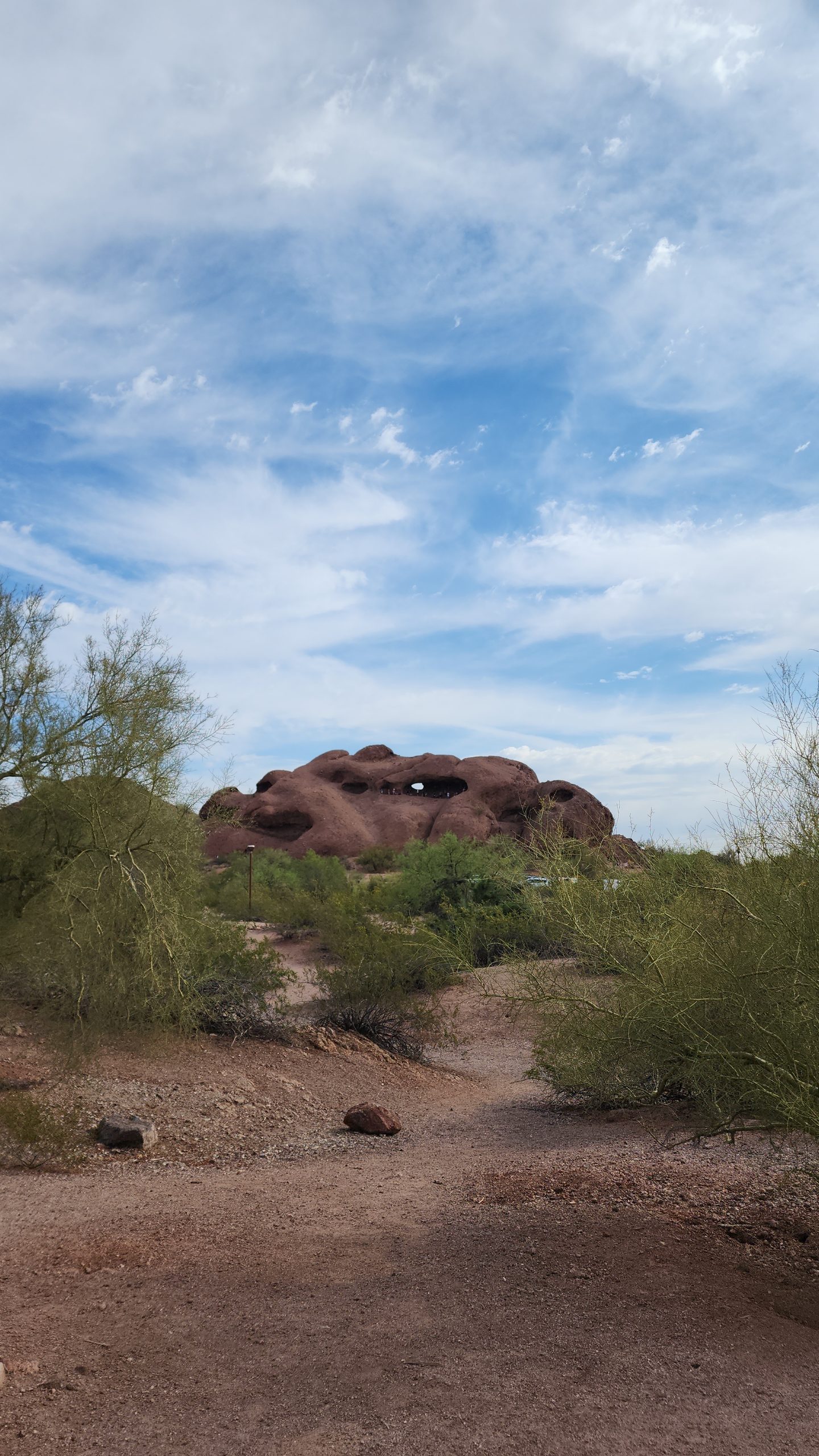 Hole-in-the-Rock is a natural geological formation in Papago Park. It’s located not far from the Phoenix Zoo, which makes it a great little stop if you’re already in the area. There’s no admission fee, and there’s plenty of free parking, which made it an easy outing for our family.