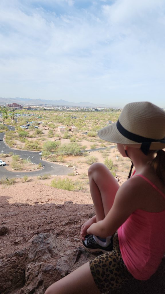 The trail itself is short and well marked, taking only about 7 to 10 minutes to reach the top. It was just enough of a climb to feel like a fun little adventure without being too difficult for the kids. Once we made it up, the view was absolutely worth it. The kids loved looking out over the surrounding Phoenix area and taking it all in from above.